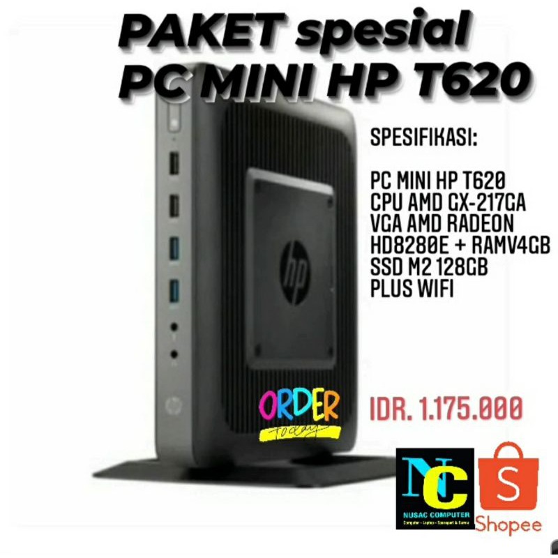 super cepat pc mini hp t620 ram 4gb with ssd m2 sata 128gb plus wifi