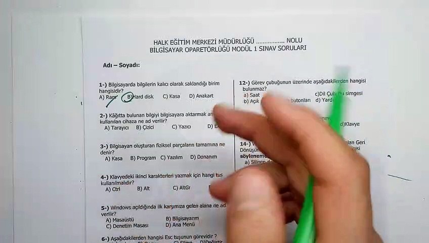 163 saatlik bilgisayar operatorlugu kursu modul 1 sorulari ve cozumu
