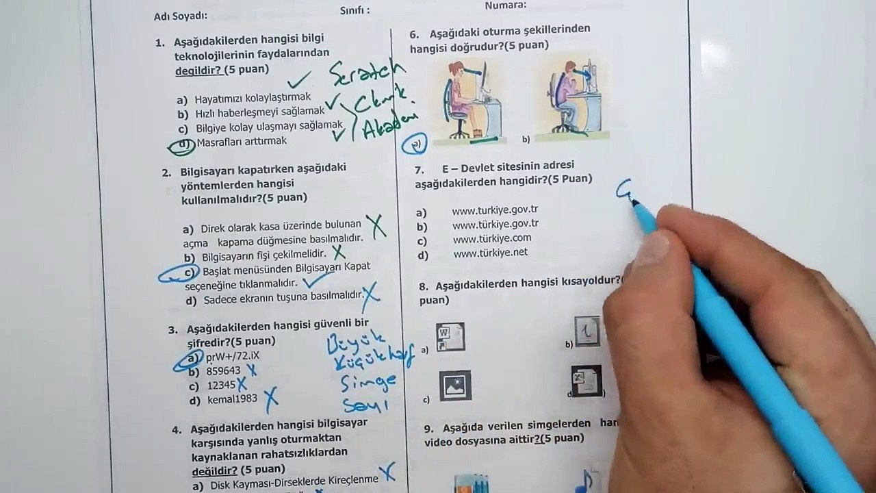 5 sinif bilisim teknolojileri 2 donem 2 yazili sinavi soru ve cozumleri calis ve izle yuz al