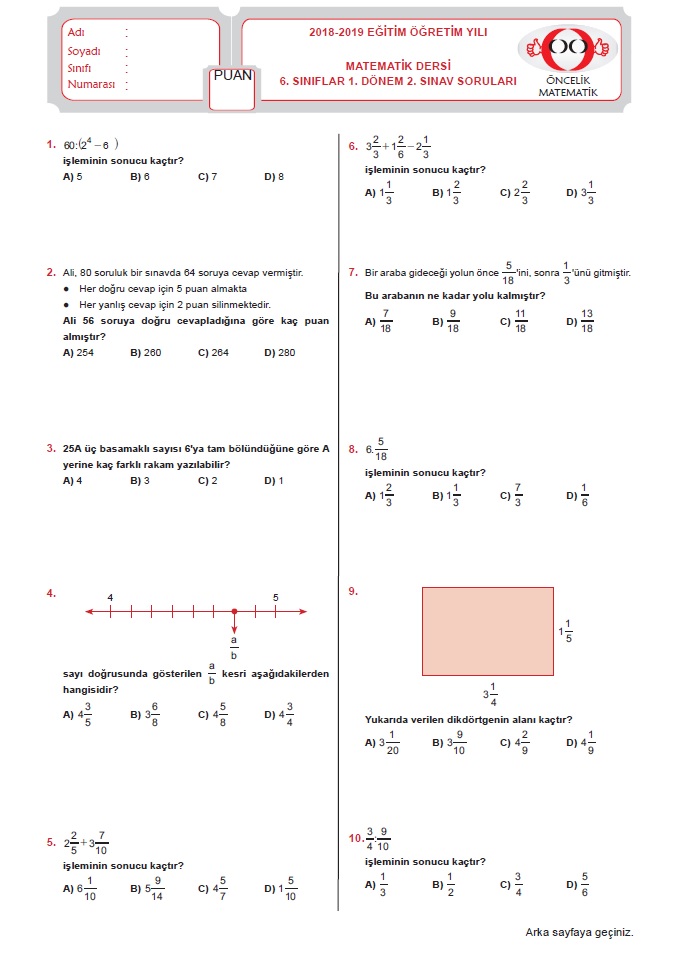 6 sinif bilisim 2 donem 1 yazili sinavi