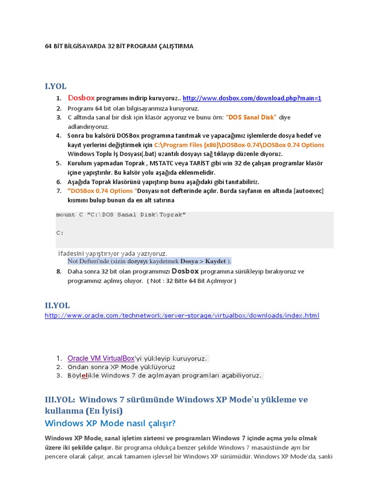 64 bit windows a 32 bit yazilim kurulumu