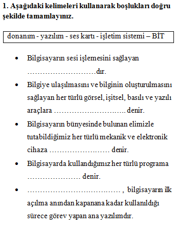9 sinif bilgisayar 1 donem 1 yazili kesin cikabilecek sorular
