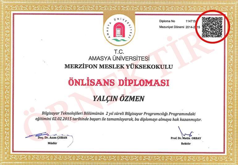 amasya universitesi nden karekodlu diploma