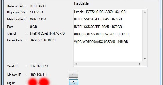 bilgisayarin detayli ozelliklerini