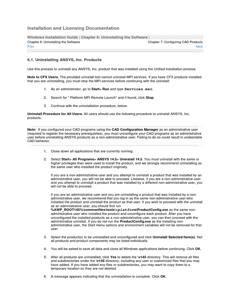 uninstall ansys 15 07