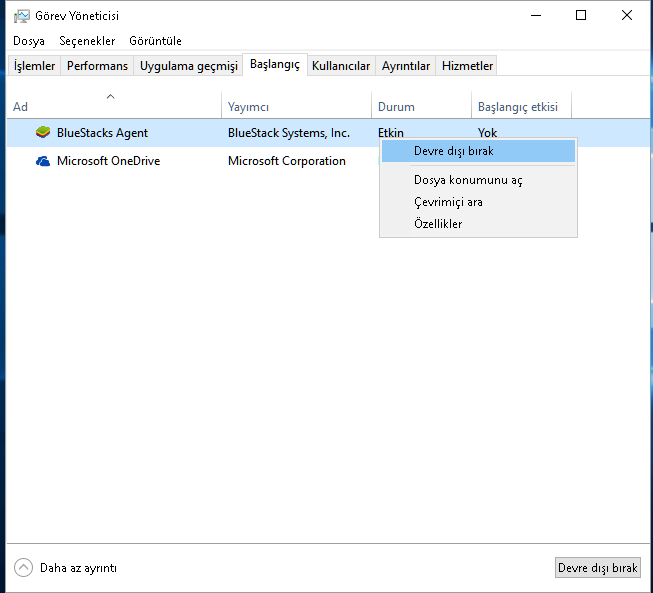 pc destek hattim bilgisayari baslatirken acilan uygulamalari kapatma