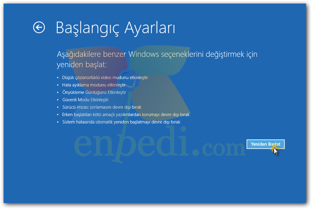 windows 8 ve 10 shift tusu ile guvenli mod da oturum acma