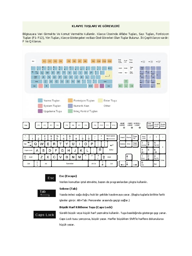 klavye nin tuslari ve gorevleri kisaca