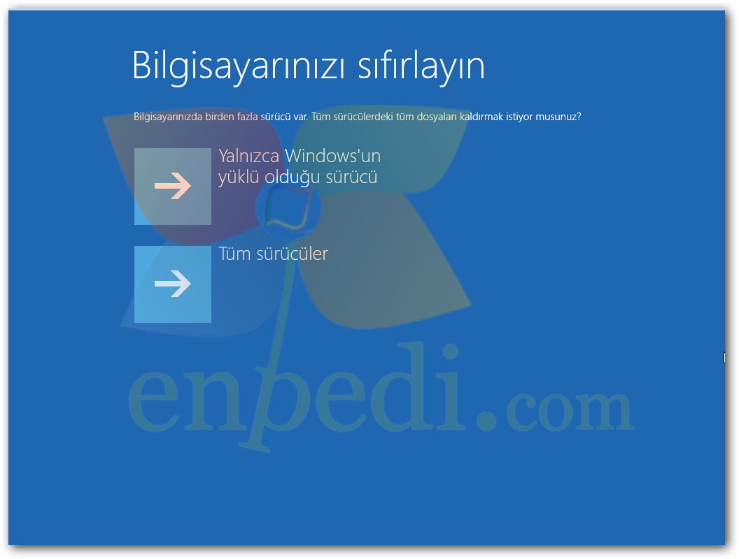 windows 8 1 fabrika ayarlarina dondurme sifirlama surucuye format atma
