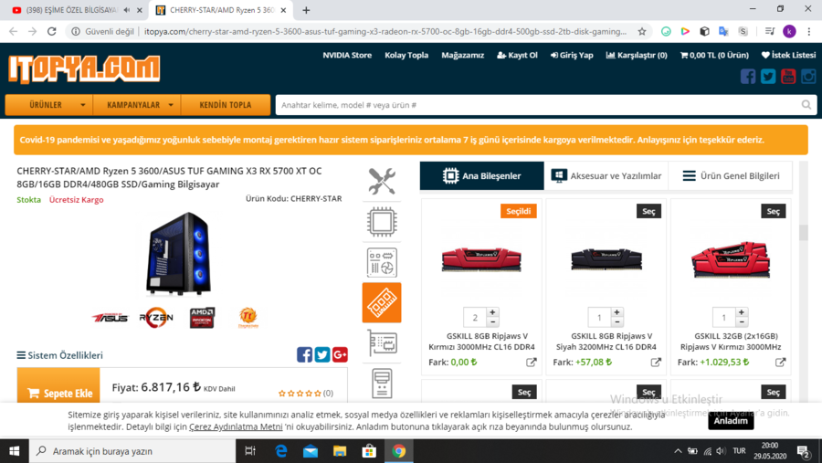 ryzen 5 3600 ve rtx 2060 oyunlarda kac