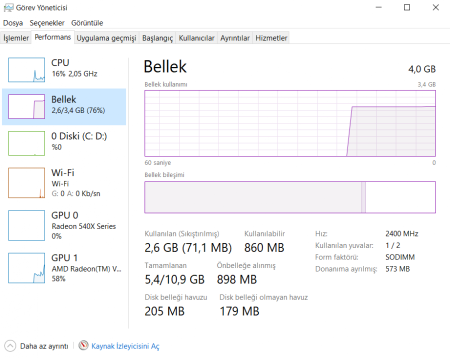 cozuldu laptop kac mhz ram