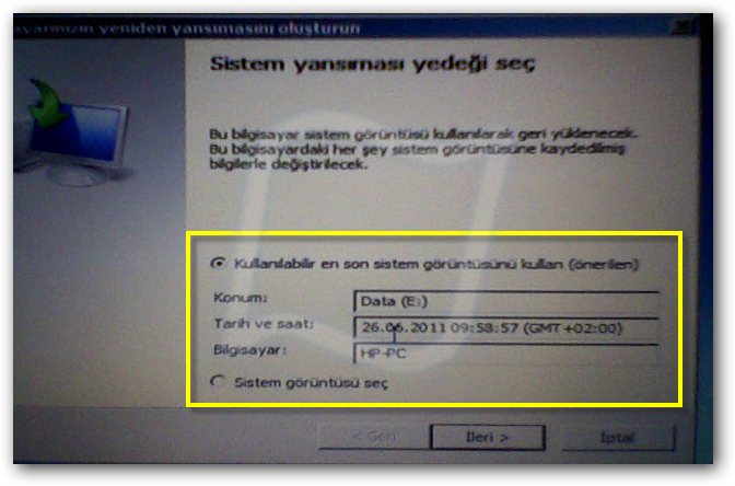 windows yedekleme imaji alirken sistem
