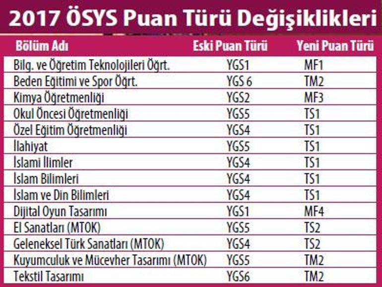 puan turu degisen bolumlere dikkat