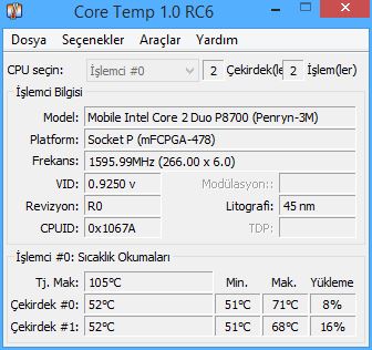 core temp indir islemci sicakligi
