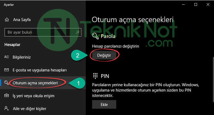 windows 10 da oturum acma sifresi nasil