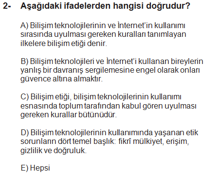 5 sinif bilisim sinav sorulari ve cevaplari