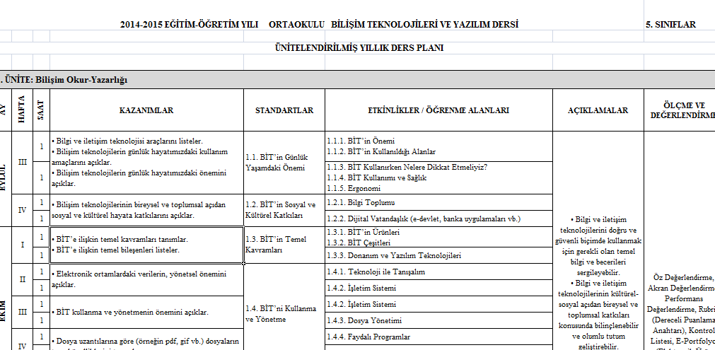 6 sinif bilisim teknolojileri 1 donem 1 yazili sinavi hazirlik bilisim dersi