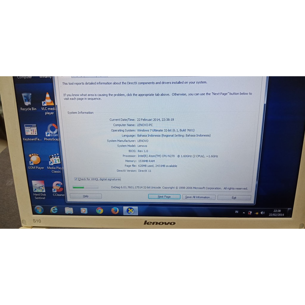 lenovo s10 1 intel atom n270 1 60ghz 2 cpus