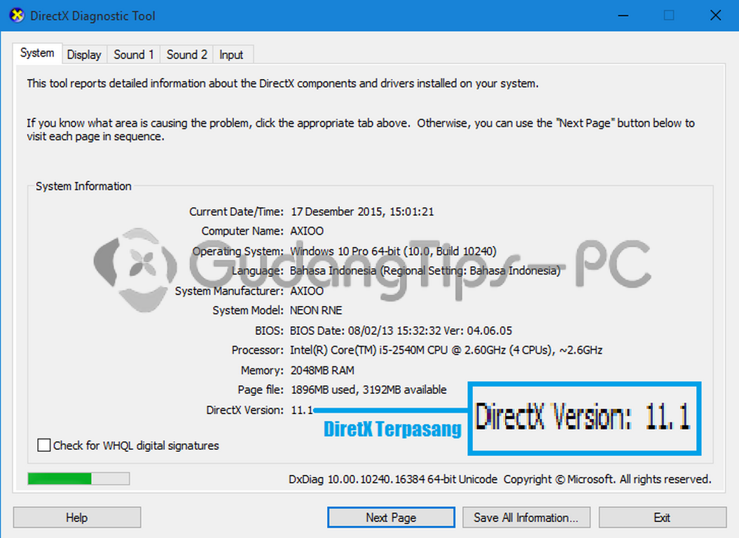 cara cek directx yang terinstal pada