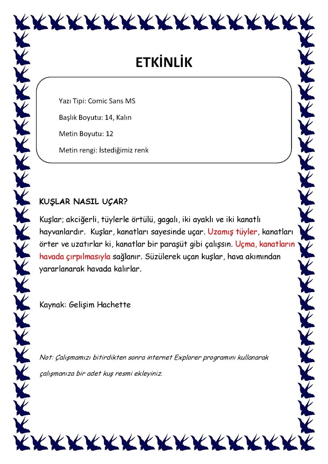 bilgisayar dersi etkinlik ornekleri