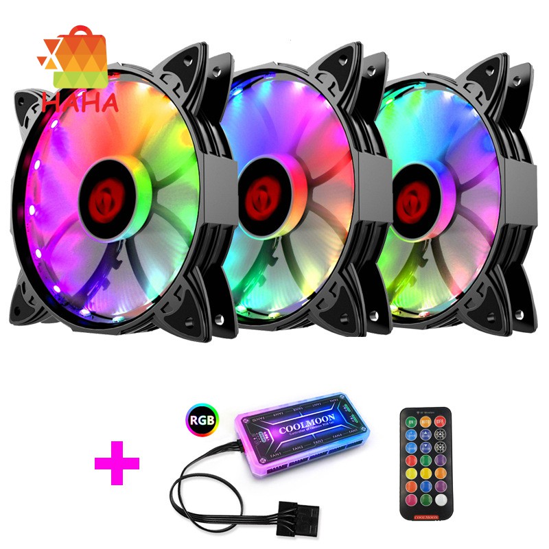 coolmoon f gl2 kasus komputer pc cooling fan rgb menyesuaikan 120mm tenang remote ir komputer baru cooler rgb cpu case fan