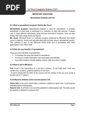 ch 9 spreadsheet notes spreadsheet