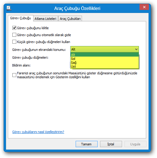 windows gorev cubugu pozisyonunu