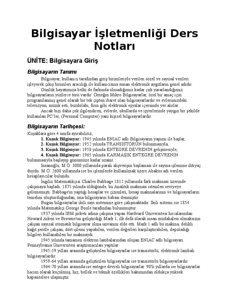 bilgisayar isletmenligi ders notlari
