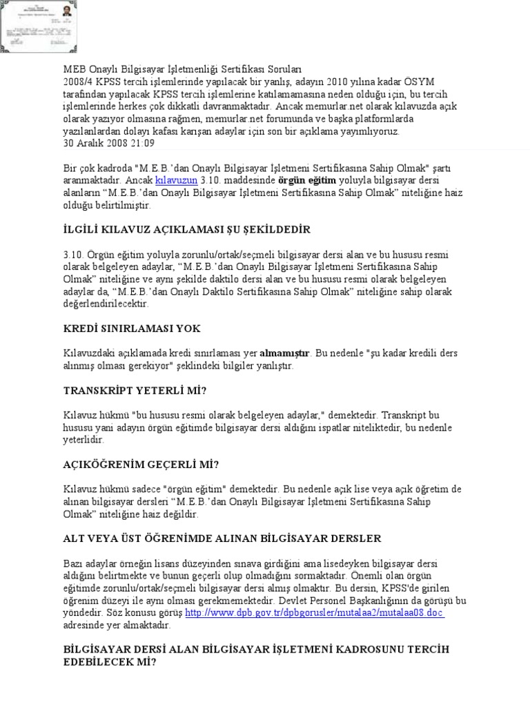 meb bilgisayar isletmenligi sertifikasi