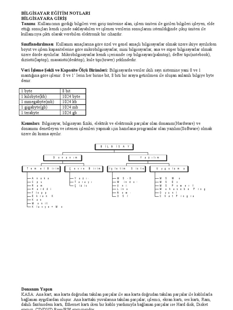 donanim parcalari nelerdir bilisim