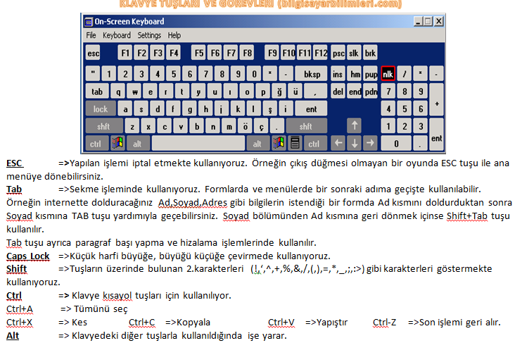 bilgisayar klavye tuşları kullanımı