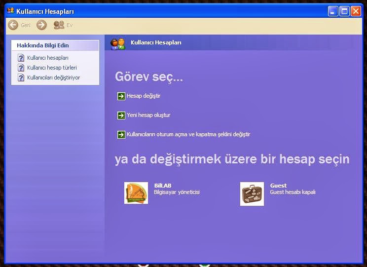 bilgisayarda yeni kullanici hesabi acma ve silme serdar penekli