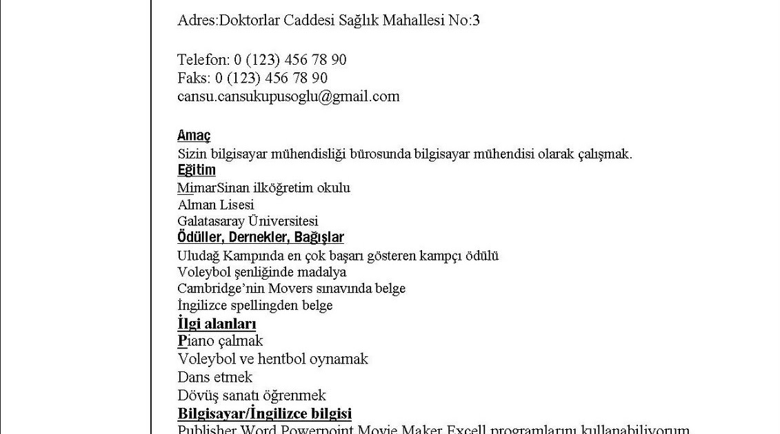 bilgisayar muhendisi cv ornekleri cv