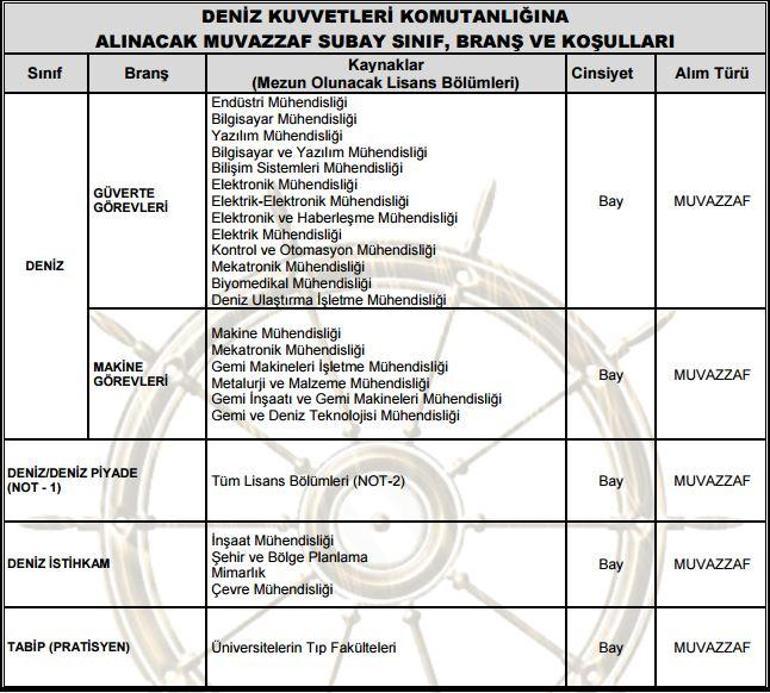 yedek subay yedek astsubay hangi bolumlerden aliniyor