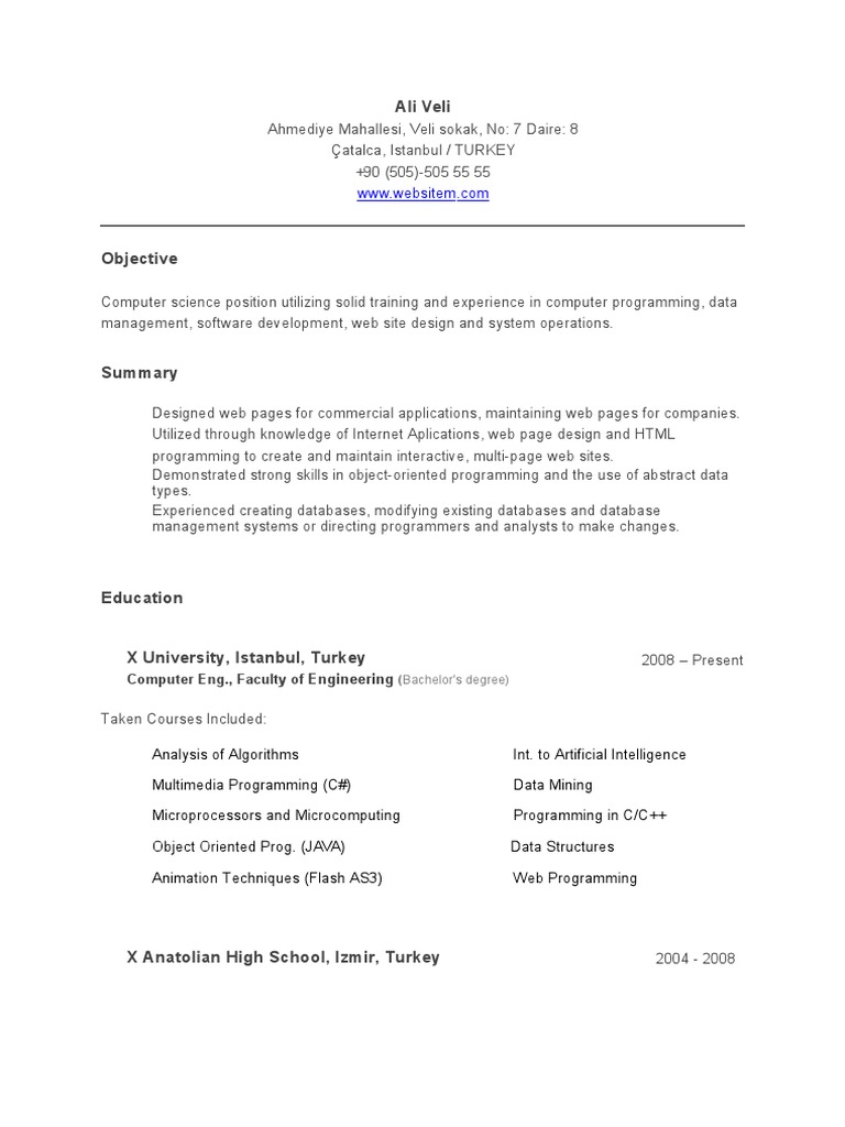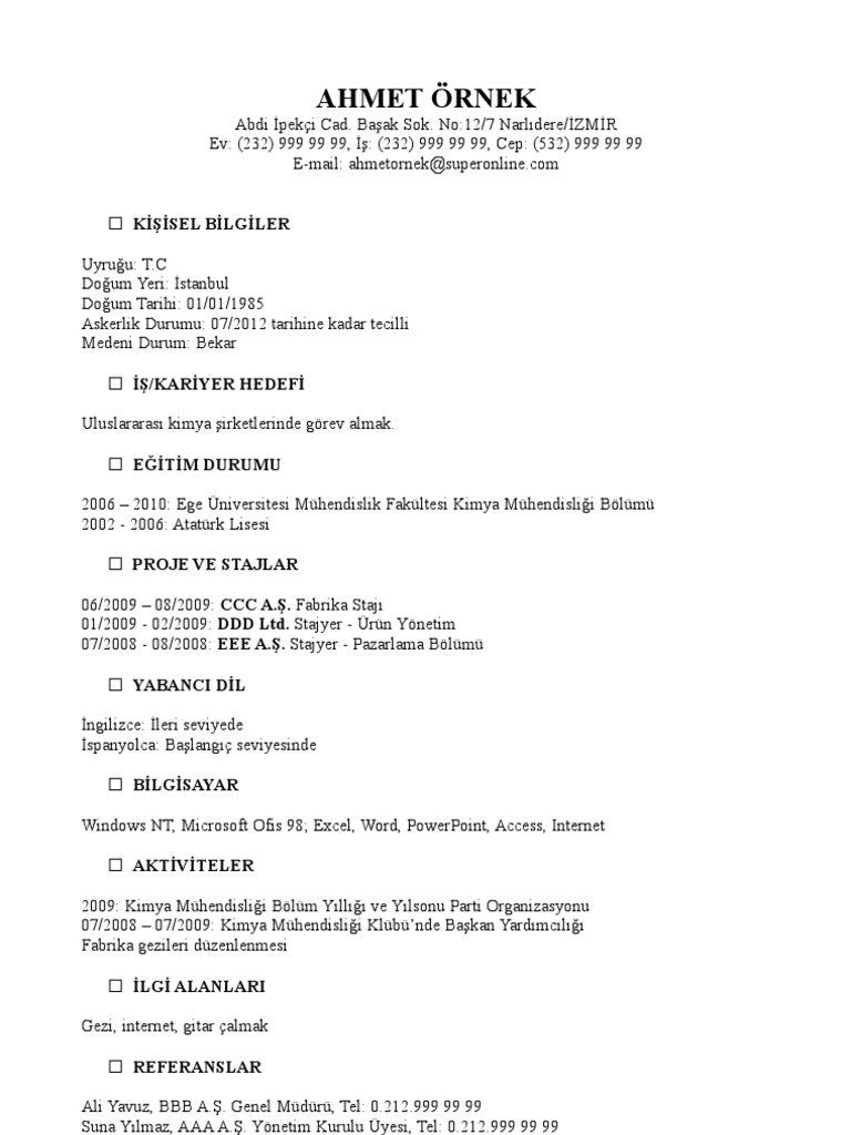 bilgi islem cv ornegi cv ornekleri hazircvornekleri net