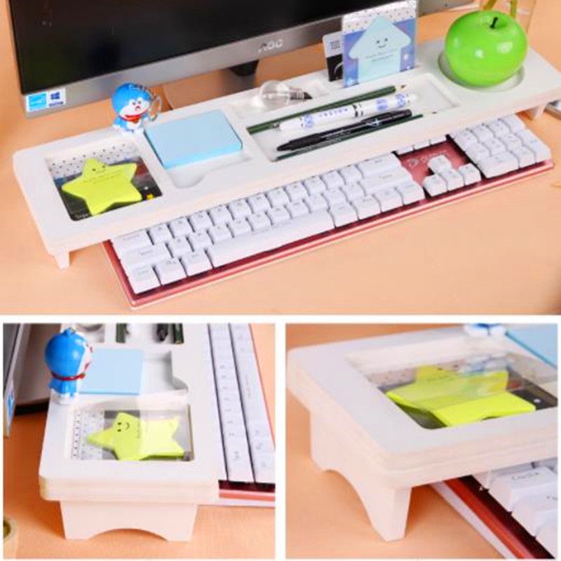 satin al ahsap bilgisayar monitoru standi yukseltici laptop raf masasi organizator ofis okul icin klavye depolama ayarlanabilir yukseklik ile