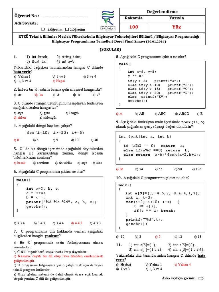 vize ve final sorulari