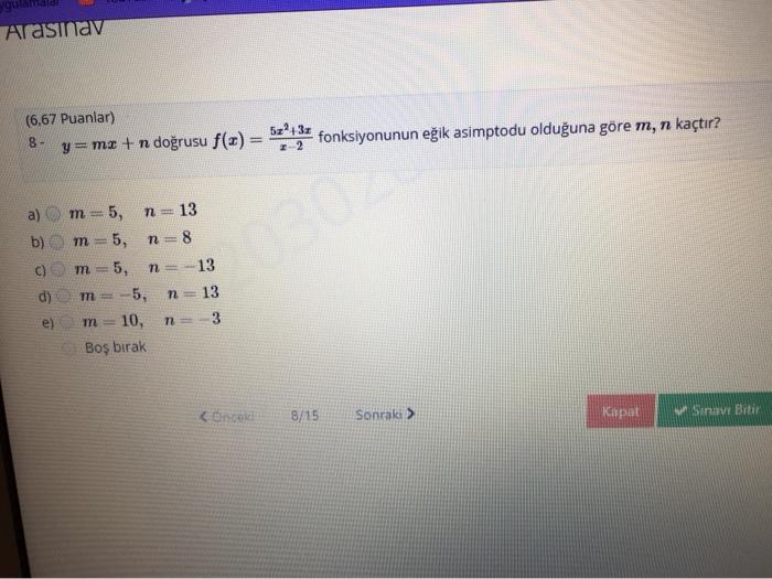 solved m n since the line y mx n