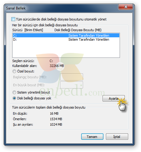 dusuk ram li bilgisayarlari ucretsiz hizlandirin windows 10 da sanal bellek arttirma