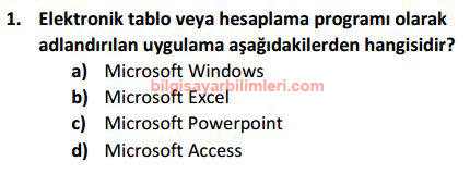excel 2010 meb sinav sorulari
