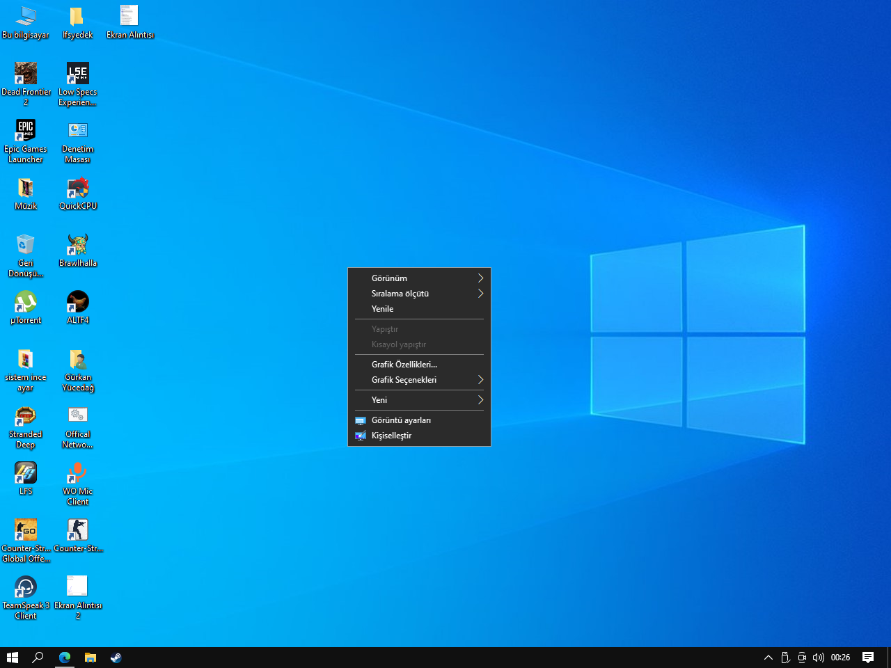 windows 10 bilgisayarimin ekran
