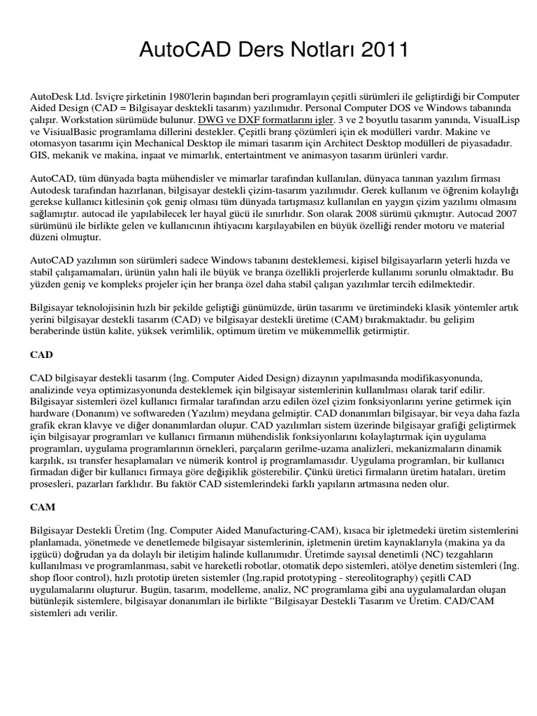 bilgisayar destekli tasarim i autocad