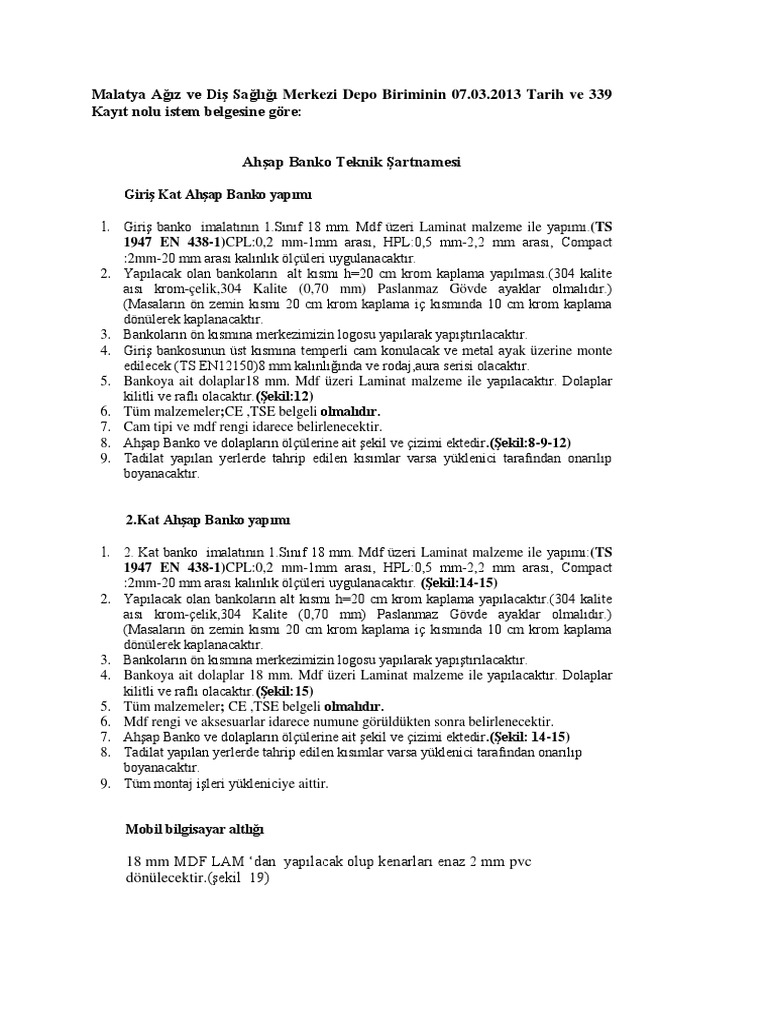 dizustu bilgisayar teknik sartname tip