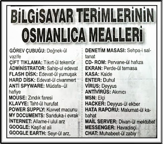 bilgisayar terimlerinin osmanlica mealleri onursavasi blogcu com