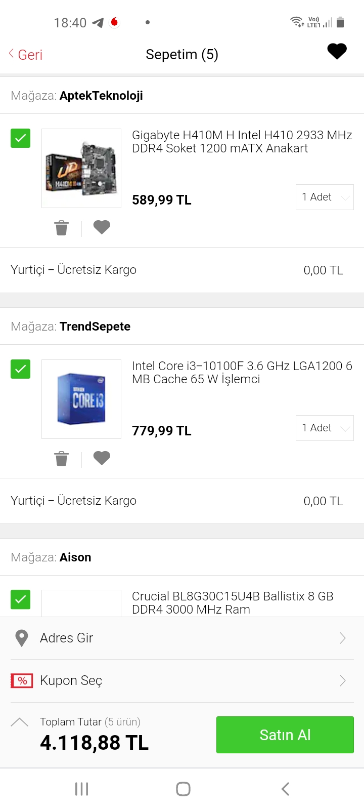 vatan da bilgisayar topladim uygun fiyatli sistem