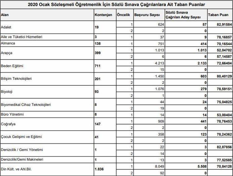 taban puanlari 2020 ogretmen atama