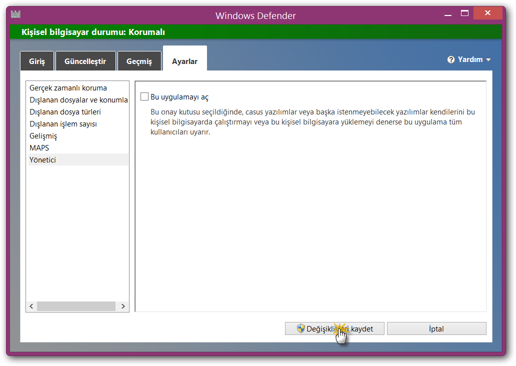 windows defender kapatma nasil yapilir