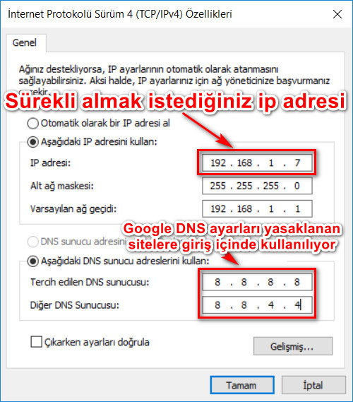 lan ip sabitleme sabit ip alma ip