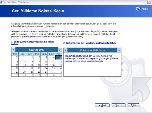 sistem geri yuklemeden sonra bilgisayar