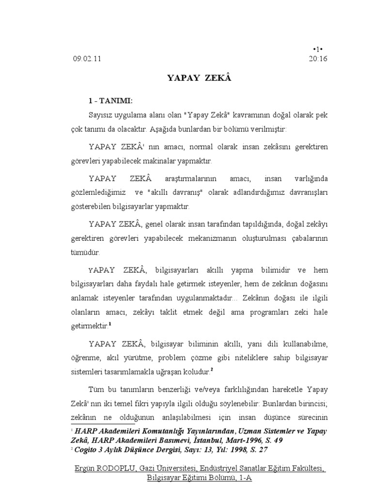 yapay zeka nedir yapay zeka uygulama
